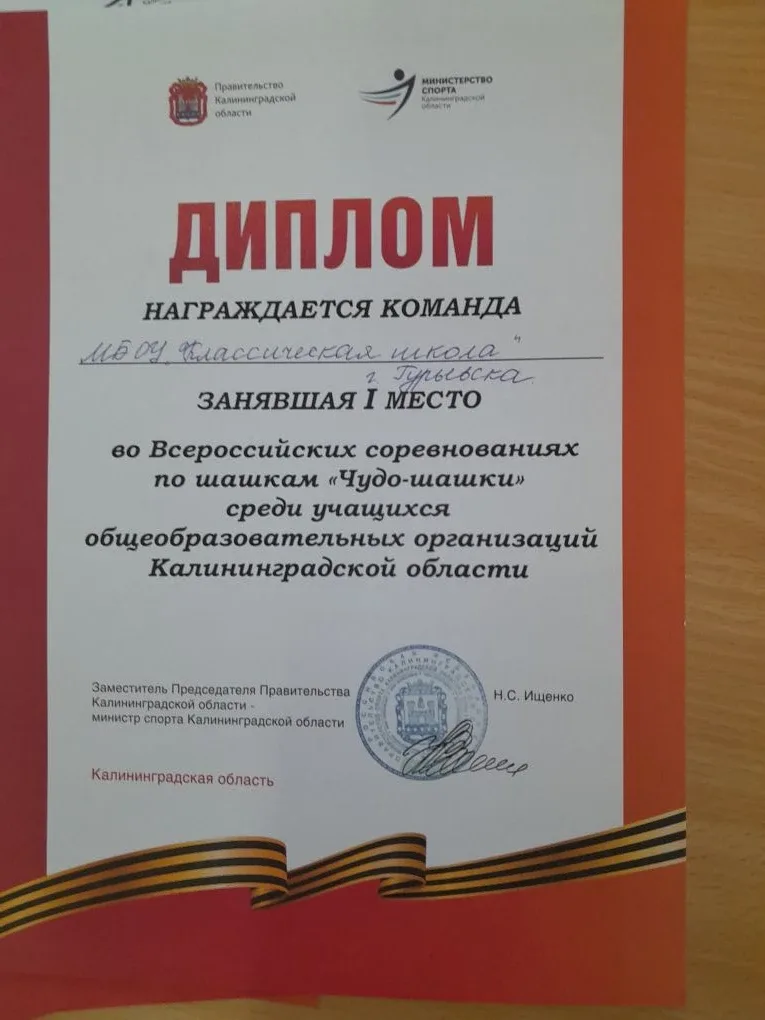 27 марта на базе МБОУ «Классическая школа» г. Гурьевска состоялся финальный этап Всероссийских соревнований по шашкам «Чудо-шашки» среди общеобразовательных организаций Калининградской области.